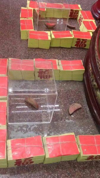 目前廟內神案前地上二組立杯,皆由擔任乩身的蔡廷祥,因有要事徵詢廣澤尊王意見擲杯的結果,當地民眾獲悉後紛紛前往觀看,並嘖嘖稱奇。為避免這二組立杯無意中遭人推倒,廟方已用金紙當圍籬結界,並不打算動立杯,讓其順其自然,並統計立杯豎立時間。