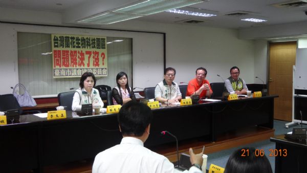 蔡淑惠、賴惠員、陳文科、陳進益等四位議員抨擊台蘭公司得了便宜又賣乖,不把市府放在眼裡,行徑如此惡劣,背後肯定有靠山在撐腰,議員們要求農業局找出該公司的組織章程,找出其背後靠山。
