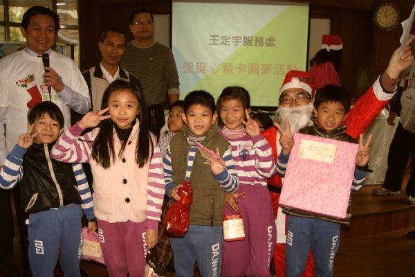 市議員王定宇強調,聖誕就是分享與愛。目前台灣的年輕世代看不到出路,小朋友們的笑容也太少了,若能讓小朋友們相信有聖誕老公公,相信小小心願能實現,得到聖誕老公公送禮物,因此展露單純的笑顏,那這個聖誕老公公圓夢團隊計畫就算成功了。