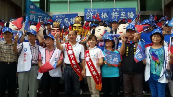 臺南市議員許至椿9月5日上午在上百位支持者與吉祥物三太子的陪同下,前往選委會正式登記參選臺南市北區市議員,許至椿為臺南市資深議員,在國民黨的提名下,今年繼續參選,爭取連任。