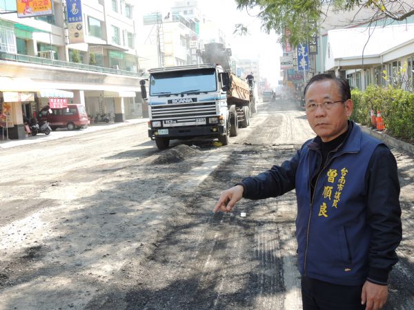 該路段路面重舖加封工程,由堆高營造公司得標,為重視道路重舖工程品質,曾順良昨中午前往路面重舖現場勘查,要求施工單位注重品質。