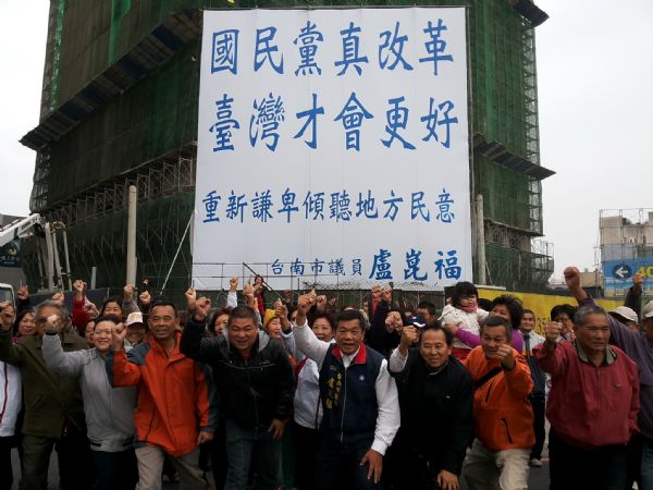 台南市議員盧崑福11日在服務處附近掛出巨型看板,出示「國民黨要真改革,台灣才會更好」的呼籲,訴求國民黨要重新謙卑傾聽民意,盧崑福再次以唐朝宰相魏徵所言:「家有倔子,不敗其家;國有諍臣,不亡其國」的箴言,期勉黨內一定要重新謙卑傾聽民意,才能與民眾共存共榮!此舉乃為忠諫國民黨勇敢踏出改革的第一步,讓全國各縣、市黨部主委由黨員直選。