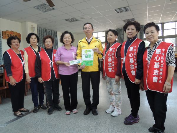 台南市惠心基金會為響應靈鷲山慈善基金會為募集慈善基金,於12月8日在國立台南生活美學館戶外所辦理的『普仁獎』愛在鳳凰城園遊會活動,特由會長市議員洪玉鳳代表該會,於25日偕同該會6個組長,前往金城國中及新南國小各贊助5000元的園遊券,盼能引發拋磚引玉之效。