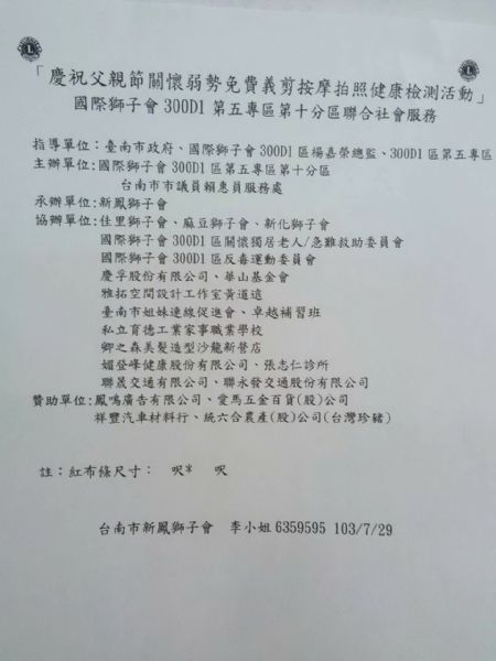 ◎主題:「父親節關懷弱勢免費義剪按摩拍照健康檢測活動」