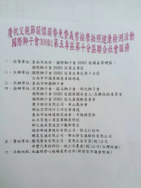 賴惠員議員---父親節關懷弱勢免費義剪按摩拍照健康檢測活動