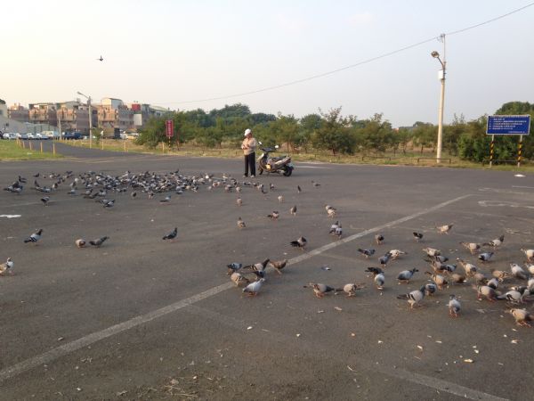 昨一大早市議員林美燕,在競選團隊陪同下前往市立體育塲,向早起的民眾拜票。現場民眾反映籃球場對面,有「愛心」人士常期餵食野鴿,造成「鴿」多成患,鴿糞、鴿羽,已經影響到愛運動者健康。林美燕希有關單位、進行勸導改善,多關心民眾運動的權益。