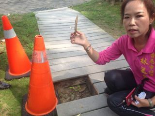 在公園內有如此離譜景像、市議員林美燕在上次總質詢中、就已提出要求改善、昨會同敎育局副局長黃緖信、體育處處長蘇錦雀、工務局股長范炅燁等各單位現場會勘。林美燕當場發飆、直接指出、步道己有立即明顯危險、市府還能睜著眼、有目無睹嗎?