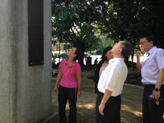 當塲敎育局長鄭邦鎮立即指示、即時浱工修剪枯枝雜木、地面坑洞積水處也馬上添土鋪平,回去後並研製「蘇南成生平沿革」將該處重新規劃整修,讓全體市民都有機會在𦲷臨一遊時,滿載而歸。
