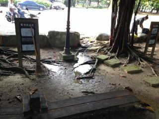 可惜的是、附近樹木太過茂盛、根脈裸露、造成地面積水、蚊蟲滋生。林美燕當塲向體育處長蘇錦雀反映,市民來運動、來緬懷先人後、被蚊蟲叮咬、萬一還把登革熱一併帶回家做紀念、有這個道理嗎?