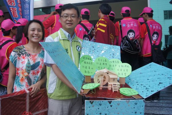 參選連任的民進黨台南市議會黨團總召李退之今(2)日上午九時,以致贈市民禮盒的形式,在台南市選委會完成登記,給市民的獻禮是一棟模型屋,以意象的方式表達將全力為勞工、青年朋友爭取平價住宅,給他們一個溫馨的家,同時也宣誓李退之若能順利連任,將優先爭取平價住宅的普及化。