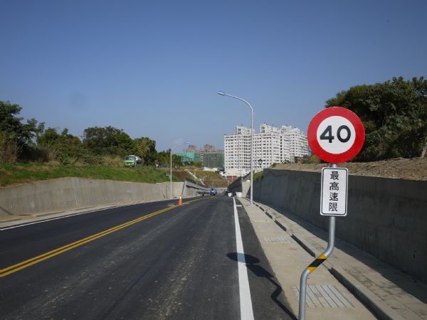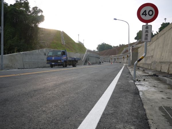(今)永康區復國一路往忠孝路方向望去,道路工程竣工在即,待市府工程單位驗收。