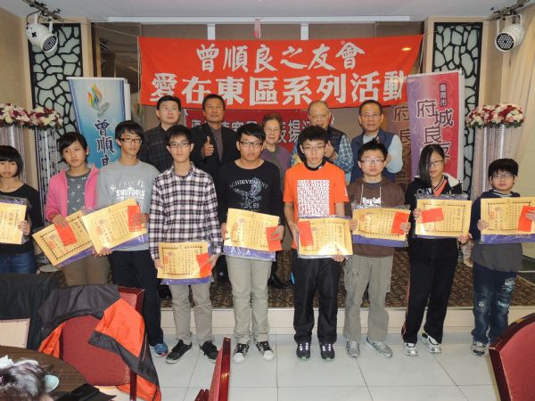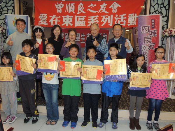 台南市府城良友文教協會「愛在東區」系列活動一0二年度優秀清寒學生表揚餐會,昨天中午在東區銀座日式料理餐廳舉行,邀請東區四所國中、九所國小家境清寒成績優異一百三十位學生,每位學生頒發獎狀、紀念品及一千元紅包各一份;以最實際的行動獻出關懷與愛心,讓這群孩子感受社會的溫暖,看見未來的希望。