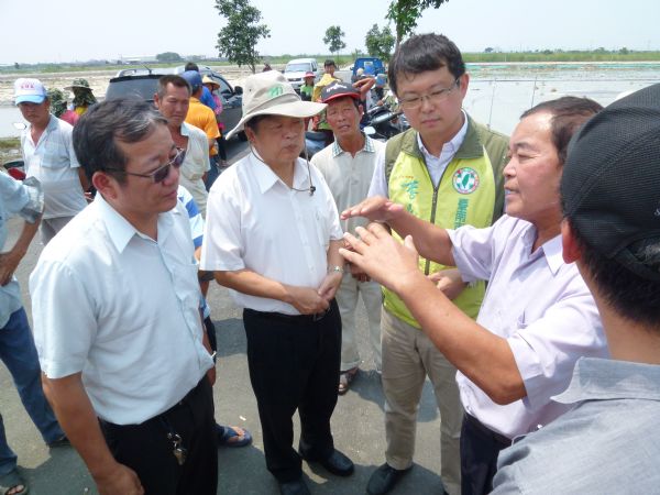 連續受到潭美與康芮颱風帶來超大豪雨的影響,鹽水區飯店里麻油寮盛產的鹽地番茄受到重擊,大部份蕃茄田泡在水中長達三天三夜,一直到昨日(9/1)才逐漸退去,農民損失慘重!臺南市議員李退之本日(9/2)與農業局許漢卿局長、水利局蔡國銓主秘、鹽水區公所王漢川課長赴現場勘察,提供農民必要協助。