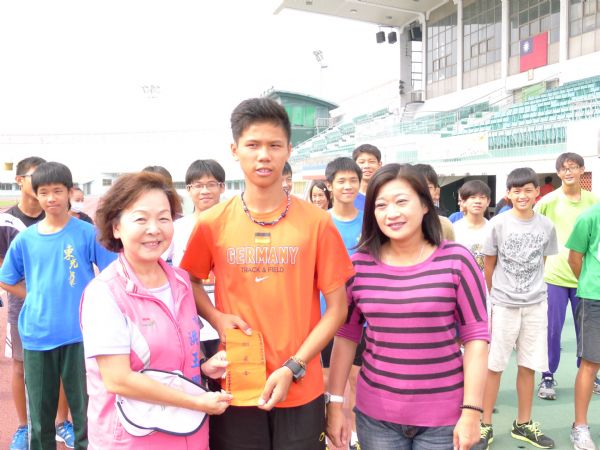 該份加菜金是由四度破台南市200公尺.跳遠、跳高、混合三項記錄的正新國小田徑好手沈育霆代表受贈。
