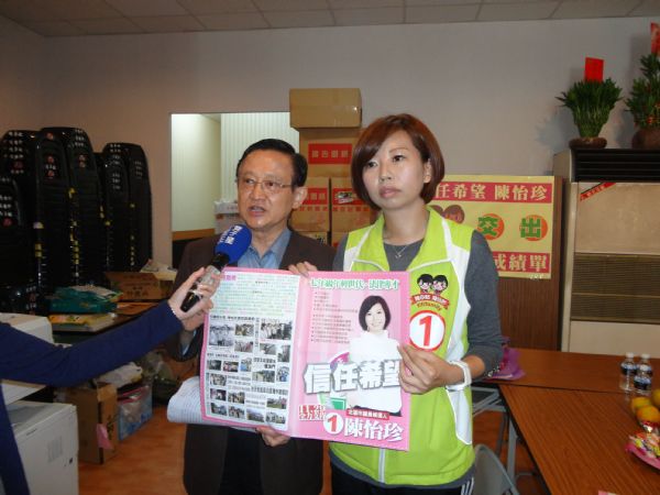 尋求連任的民進黨台南市北區市議員陳怡珍18日上午召開「信任希望,陳怡珍交出一張漂亮成績單」記者會,並公佈最新一波文宣,內容記錄了四年任期來的點點滴滴,舉辦超過一千場的會勘,足跡踏遍北區每個角落。先前法拍屋服務案件的單親媽媽莊明玉,也來現場送花致意,替陳議員加油打氣。現場更有許多基層里長包括成德里長王三保、延平里長吳坤福、興南里長徐德興、華興里長謝昌成、大豐里長余禮南、和順里長吳杰、成功里長鄭景元及大港里長候選人黃良賢等皆出席背書,肯定陳怡珍議員的努力,大力讚許她的認真與堅持。陳怡珍及里長們都希望能用自己的成績,作為選民支持最堅強的後盾,拜託大家用選票肯定,讓認真用心的候選人能繼續連任為大家服務,為地方爭取建設,為弱勢族群發聲。