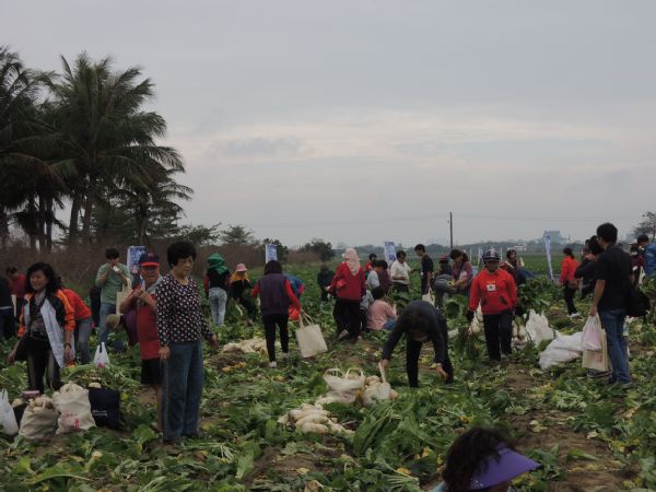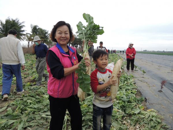 冬天是蘿蔔盛產季節,市議員洪玉鳳鑑於一般居住都市的民眾少有機會接觸泥土,特向友人承租安南區學甲寮一塊一分多的農地種植白蘿蔔,經過2個多月的細心照顧,15日特開放讓大家採蘿蔔,不管大人小孩一看到雪白的蘿蔔從土裡拔出來後,都興奮的大叫,現場還立即料理蘿蔔大餐,讓300多位與會者品嚐自己採摘的甜美果實,度過一個歡樂的田園之樂。