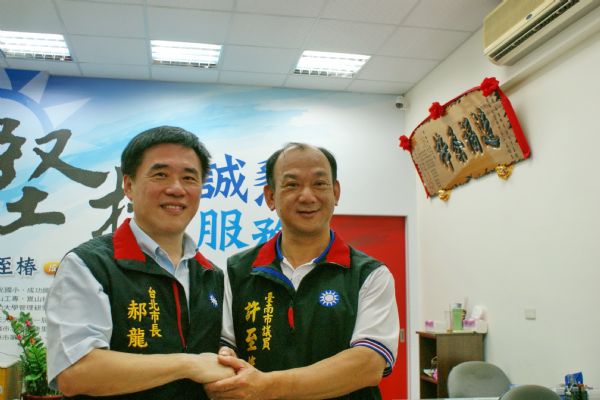 國民黨副主席台北市長郝龍斌日前,蒞臨台南市北區市議員許至椿服務處加油打氣,誇讚許議員忠厚、老實、說實話、做實事,用誠懇態度堅持為民服務,是最值得信賴的民意代表,並呼籲大家支持許至椿議員,讓許議員有為大家永續服務的機會。