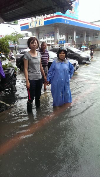 台南市由於西南氣流的關係,徹夜暴雨不斷,市議員陳怡珍今天清早六點多就開始四處巡察北區各地的淹水情形,也同時檢視大型抽水站是否正常運作。發現仍舊有許多地方淹水,有些地區甚至水深及膝,表示系統根本來不及排水。