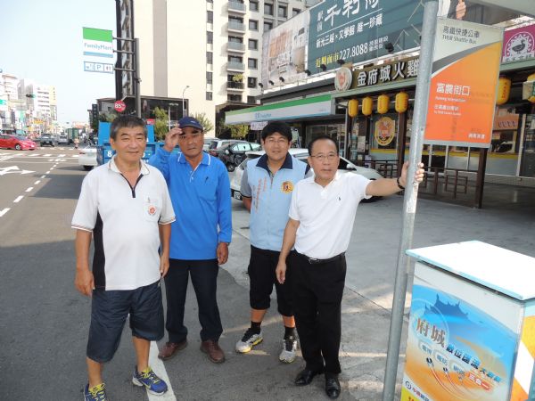 台南市高鐵奇美線接駁車東門路三段站牌位置不當,民眾候車必須忍受風吹日曬雨淋,造成不便,民眾向虎尾里長李明道及和平里長陳春材反映,市議員曾順良接受陳情,日前邀請市府交通局及高鐵台南站會勘,曾順良爭取將原站牌改至東門路三段一六八號全家便利商店前,曾順良昨會同和平里長陳春材、虎尾里長李明道及里辦公處主任李泓嶢現場會勘,當地居民人人稱便。