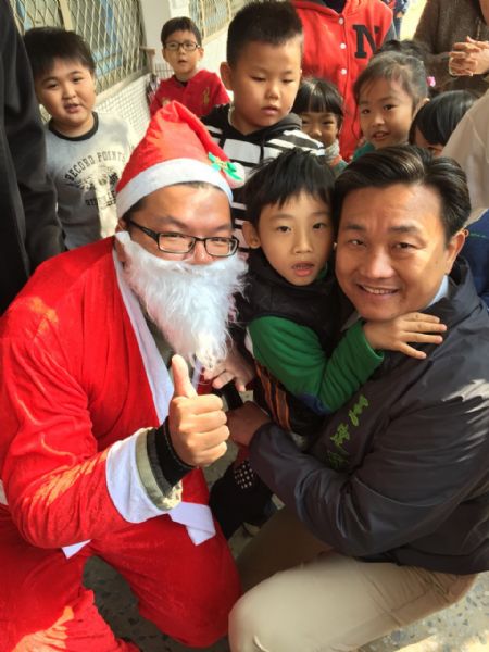 王定宇強調,整個活動要籌備一年的時間,團隊從九月就發聖誕心願卡到每個班級,透過老師的篩選回到志工,團隊透過勸募的方式匯集心願禮物,然後由志工扮演聖誕老公公,送到小朋友的手上。今天特別感謝崇明國小左逢源校長、關廟國小吳博明校長、新光國小蔡玉仙校長,及學校老師等全力支持,熱情配合。我們大人的快樂,甚至不輸給小孩子。