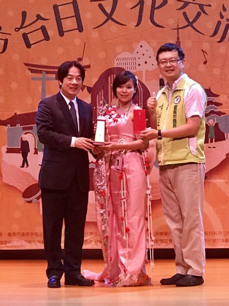 市長賴清德親臨活動現場,頒發各組冠、亞、季軍得主獎盃和獎金。賴清德市長在致詞時強調,台南市和日本長期以來一直維持十分友好的關係,2016年2月6日臺南市發生芮氏規模6.6的地震,造成生命、財產的損失,日本方面及時伸出援手來幫助南市災民,不久,日本發生熊本大地震,台南市也把愛心送到日本,從這兩件事可以證明日本和台南市民間交流密切及兩國情誼深厚。這次台日交流協會和市議員李退之共同主辦台日歌唱交流比賽,讓台灣翻唱自日本的經典好歌重現,說明好歌永留人心,值得鼓勵。賴市長對活動期間執行團隊臺灣大台南發展促進會給予肯定,也感謝評審團的辛苦,更給每位參賽選手最高評價,感謝大家為台日文化交流的付出和貢獻。