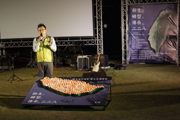 市議員李退之報告自己的二兒子在2月19日出生,因此萌生用紅蛋組成臺灣來代表「新生」概念。而今年的干支紀年又循環到甲午年,120年前的甲午年(1894年)因為清朝在甲午(日清)戰爭中戰敗,開啟了臺灣歷史上新頁、奠定了臺灣現代化基礎。但過去臺灣歷經多次統治者的轉變,當權者總是企圖抹去過往歷史。期望再一次的甲午年(2014年),所有臺灣人能夠一起承擔起二二八事件的傷痛、正視這座美麗島嶼的歷史,並共同以正面態度思索臺灣的未來、讓臺灣獲得新生。