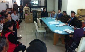 王定宇邀集工務局使用管理科長吳文進、市場處課長王優勝、稅務局土地稅科股長陳錦華、東南地政處、東區大福里長陳錦秀、大德里長洪茂東等,和攤販代表們在王定宇服務處協調會。