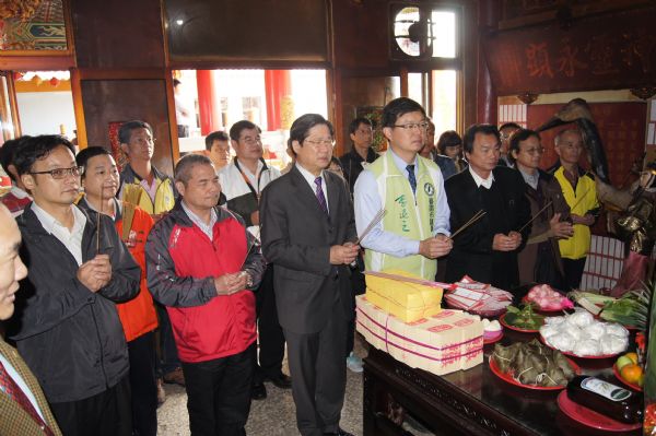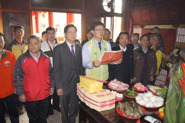 16日由市議員李退之、大眾廟管理委員會主任委員呂廣義暨全體委員、國立新營高級中學校長郭調清暨全體教職員、興國高級中學校長趙效賢暨全體教職員、南光高級中學校長洪丙丁暨全體教職員、新榮高級中學校長劉昌蒲暨全體教職員、鳯和高級中學校長林明正暨全體教職員、明達高級中學校長蔡忠昌暨全體教職員、育德工業家事職業學校副校長邱水順暨全體教職員、國立高級工業職業學校主任蕭正欣暨全體教職員、舊營里長謝清和,前雲林教育局長林洋浩,於鹽水大眾廟文昌殿舉辦祭祀祈福儀式,一起為1月底學測、5月統測及7月指考的同學們加油。李退之希望同學們找時間親自來參拜文昌帝君,順便找找自己的祈福卡貼在哪裡。
