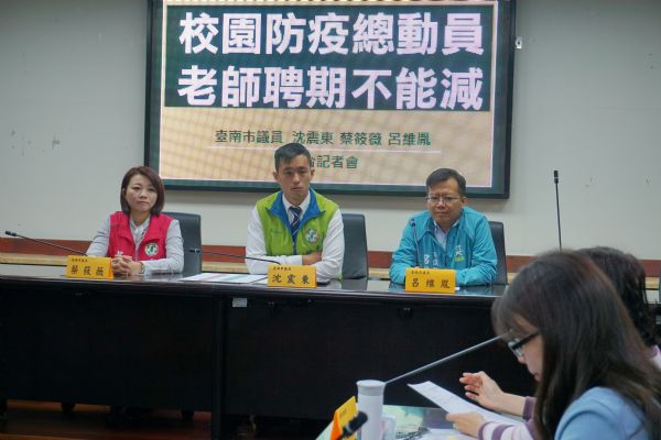 沈震東、蔡筱薇、呂維胤議員「校園防疫總動員 老師聘期不能減」記者會