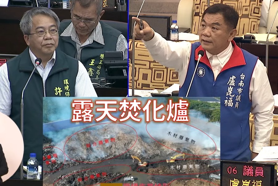 市議員盧崑福今天在自由發言時,秀出烏樹林廢棄物暫置場空拍圖,該場區共有六處堆置點,木材廢棄物及綜合廢棄物堆放區竟大面積迅速燃燒,周邊居民指稱當天傍晚就出現燃燒濃煙,消防局卻遲至晚間8時40分接獲報案。因環保局長許仁澤坦承保全員下午5時下班,盧崑福質疑,既然現場無人看管,環保局如何認定「自燃」?棄置場管理單位是環保局,保全公司怠忽職守,負責人酒醉出現火災現場,許仁澤應該對外說清楚。