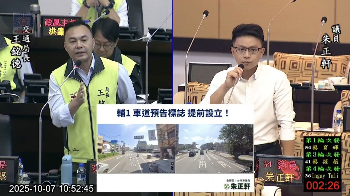 朱正軒也建議雙向有左轉附加車道的路口,應標配延長車道設計,以提高整體通行效率。對此,交通局長王銘德承諾,將全面盤點各主要幹道與重點路口,逐步建立「輔1」預告標誌、引導標線、延長車道等為標準配置,作為市區交通工程設計基準。