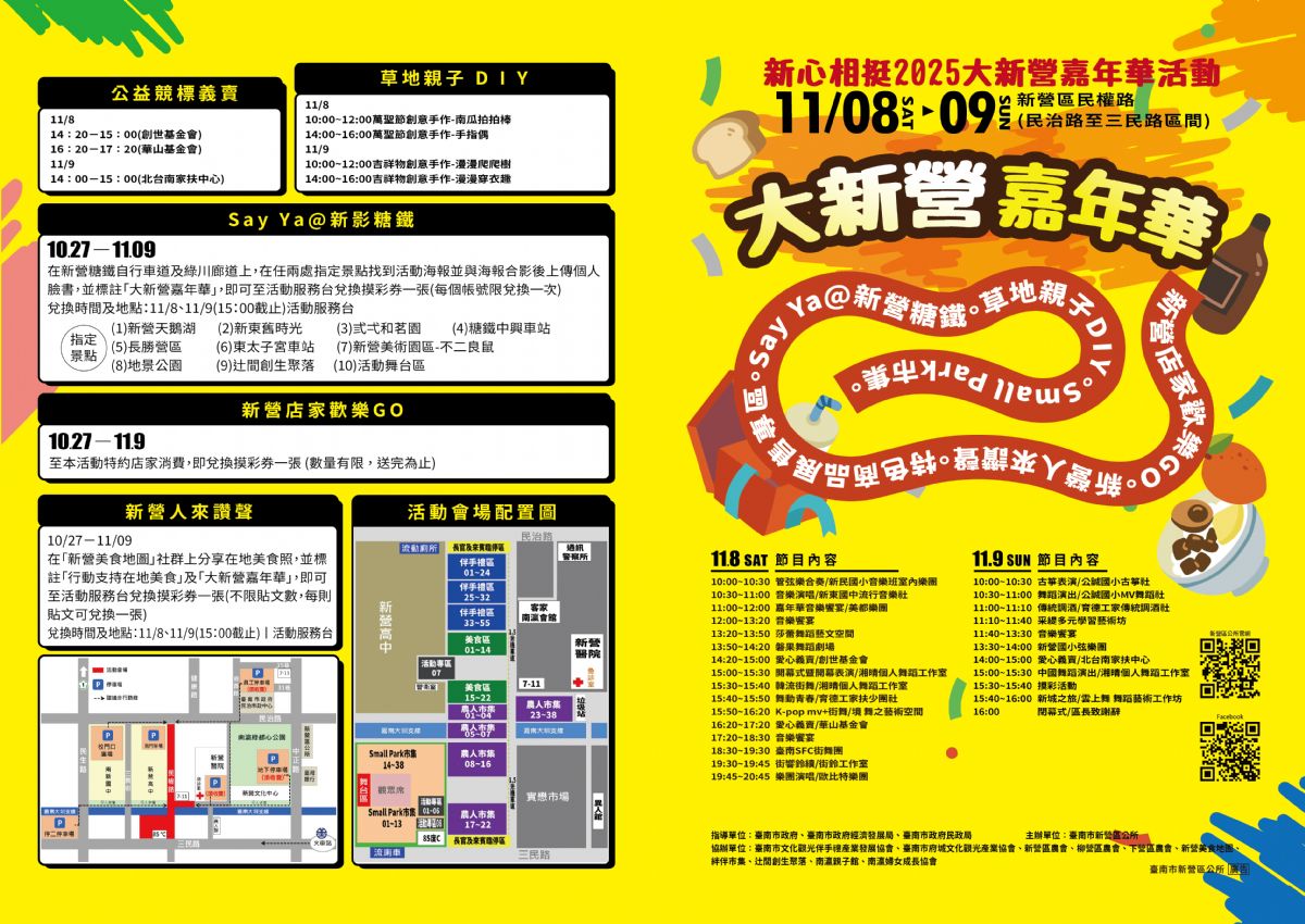 6️⃣SayYa@新營糖鐵~在任兩處指定景點找到活動海報並與海報合影後上傳個人臉書,標註「大新營嘉年華」,即可至活動服務台兌換摸彩券一張!
