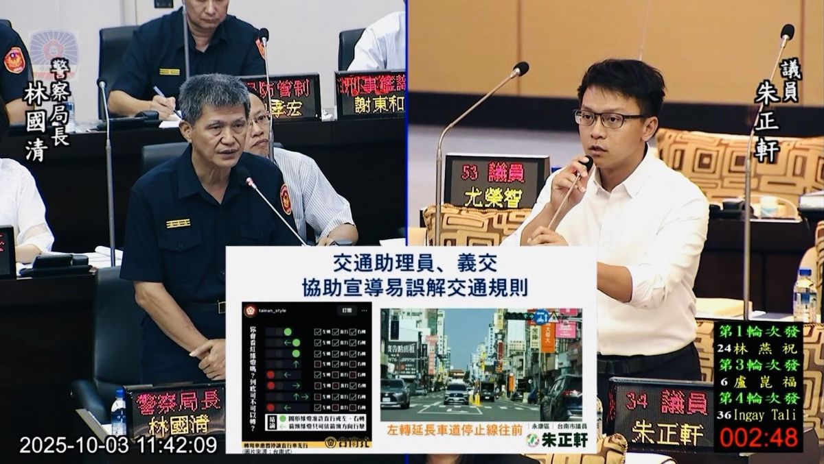 台南市議員朱正軒於議會質詢指出,許多駕駛仍對交通規則存在誤解,如圓形綠燈要機會左轉時應超出停止線,在設有左轉待轉延長車道的路口,左轉車輛於直行燈號亮起時,應往前行駛至延長車道等待左轉燈號,此舉可增加左保時項疏散左轉車流的效率,也改善左轉車回堵至直行車道的問題。