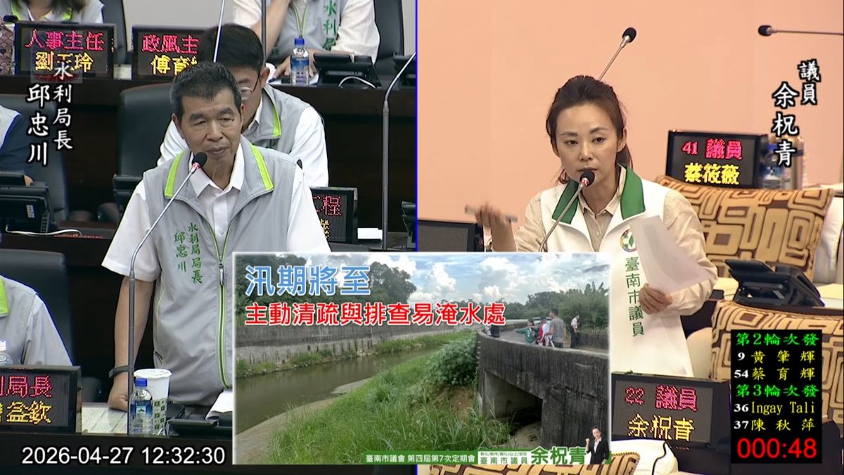 余柷青強調,中央預算雖尚待通過,但地方防汛不能等待。面對近期5月汛期將至,水利局除配合公所清淤,也應主動盤點河道、大型排水、下游瓶頸及易淹水熱區,並加速虎頭溪排水清疏工程,確保排水系統正常運作,以及檢驗抽水機能正常運作,以達守護市民生命財產安全的責任。