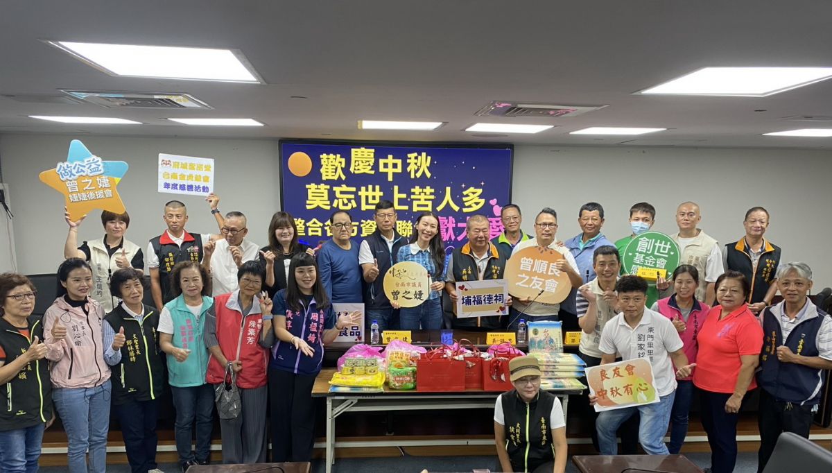 台南市今年遭受前所未見的風災和暴雨侵襲,導致許多看天吃飯的弱勢族群生計更顯捉襟見肘,時值中秋佳節,台南市議員曾之婕發起號召,除了邀請曾順良之友會參與創世基金會中秋月圓義賣活動,並彙總各界提供的物資,捐助給東區的特境家庭及弱勢戶,傳遞社會溫馨的關懷。